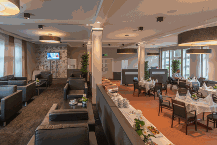 Bright, minimalist, and modern – that's the atmosphere of the "Five Continents" restaurant.